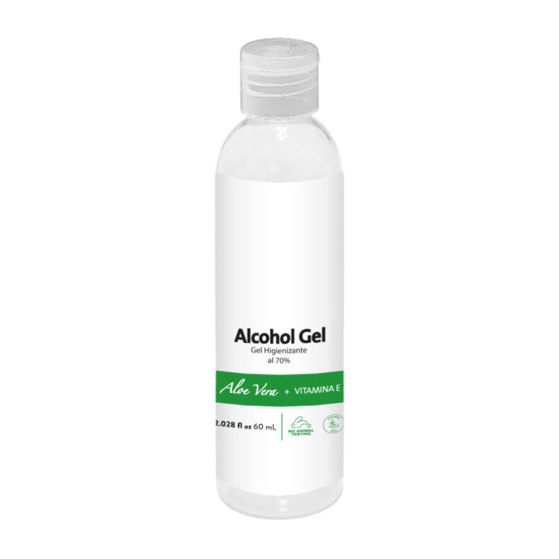 Alcohol en gel antibacterial semi sólido en botella transparente con tapa flip top. Alcohol al 70% lo cual hace que tenga un alto poder germicida. Contiene aloe vera y vitamina E.