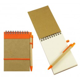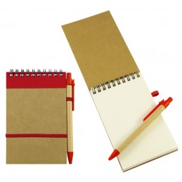 Libreta Ecológica con tapas de cartón reciclado, 50 hojas interiores blancas (croqueras). Incluye cierre elasticado de color y bolígrafo ecológico al tono.